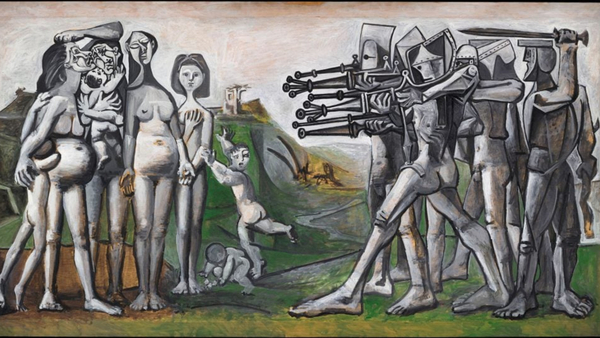 في خضم هذه المأساة، جاء الفنان العالمي بابلو بيكاسو ليعبر عن رفضه القاطع للحرب، وعكس من خلال فنه الرعب والدمار الذي يتركه العنف على المدنيين.