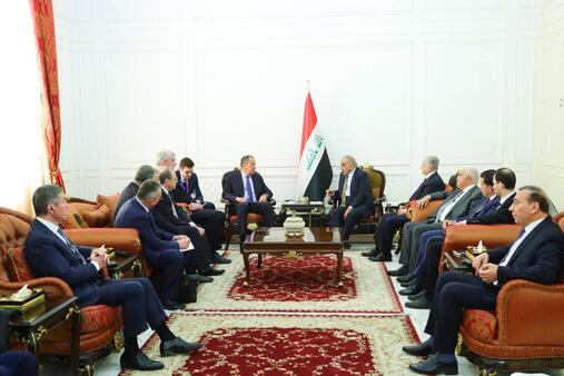 وذكر بيان صادر عن المكتب الإعلامي لرئيس الوزراء أنه "استقبل وزير خارجية جمهورية روسيا الاتحادية سيرغي لافروف، والوفد المرافق له الذي ضم المبعوث الخاص للرئيس الروسي إلى الشرق الأوسط وعدد من المسؤولين في الخارجية الروسية ومدراء وممثلي عدد من كبريات شركات النفط والغاز، والسفير الروسي في بغداد" .
