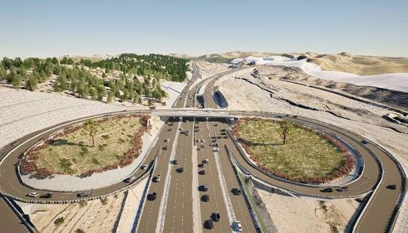 يتألف المشروع من أربعة جسور ونفق أرضي واحد (Underpass)، بالإضافة إلى 40 عبّارة صندوقية بأحجام مختلفة، مع تزويده بأنظمة صرف صحي وسياج وقائي. ولفتت الإدارة إلى أن المشروع نُفذ بالكامل (بنسبة 100%) بأيدٍ عاملة محلية، حيث شارك فيه 2000 عامل وموظف واستخدمت فيه 600 آلية متنوعة.