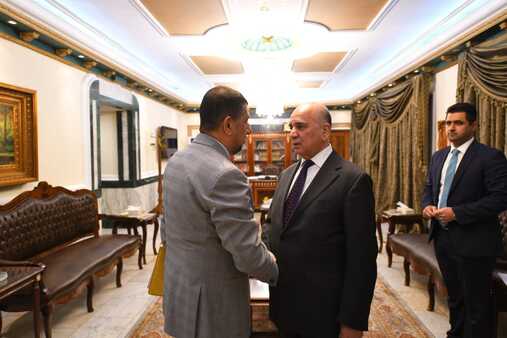 استقبل نائب رئيس الوزراء للشؤون الإقتصادية وزير المالية فؤاد حسين بمكتبه في بغداد اليوم الثلاثاء محافظ نينوى منصور مرعيد والنائب عن المحافظة اخلاص الدليمي .