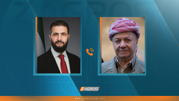 تلقى الرئيس مسعود بارزاني، مساء يوم الثلاثاء، الموافق 20 كانون الثاني 2026، اتصالاً هاتفياً من الرئيس السوري، أحمد الشرع.