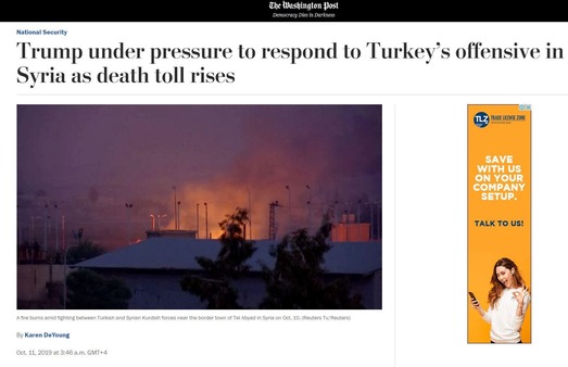 وأشارت الصحيفة إلى أن الإدارة الأميركية تفاوضت حول صفقة مع تركيا لإقامة منطقة عازلة لمنع هجوم تركي عبر الحدود ضد الكورد السوريين، ولكن بعد اتصال الأحد بين أردوغان وترمب، أعلن البيت الأبيض أن تركيا على وشك شن عملية عسكرية في شمال سوريا، وأن القوات الأميركية في طريقها للخروج.