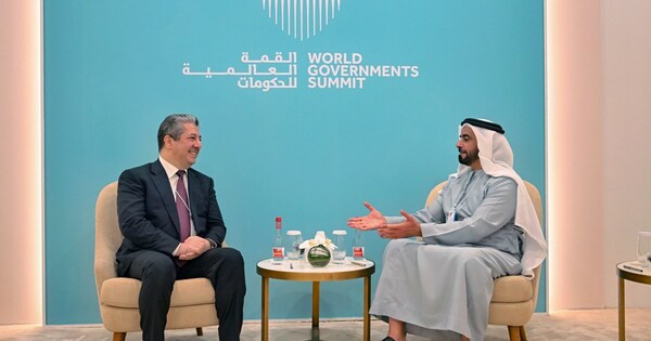 واصل رئيس حكومة إقليم كوردستان مسرور بارزاني، اليوم الثلاثاء 3 شباط 2026، سلسلة لقاءاته على هامش القمة العالمية للحكومات في دبي، حيث اجتمع مع سيف بن زايد آل نهيان، نائب رئيس مجلس الوزراء وزير الداخلية في دولة الإمارات العربية المتحدة.