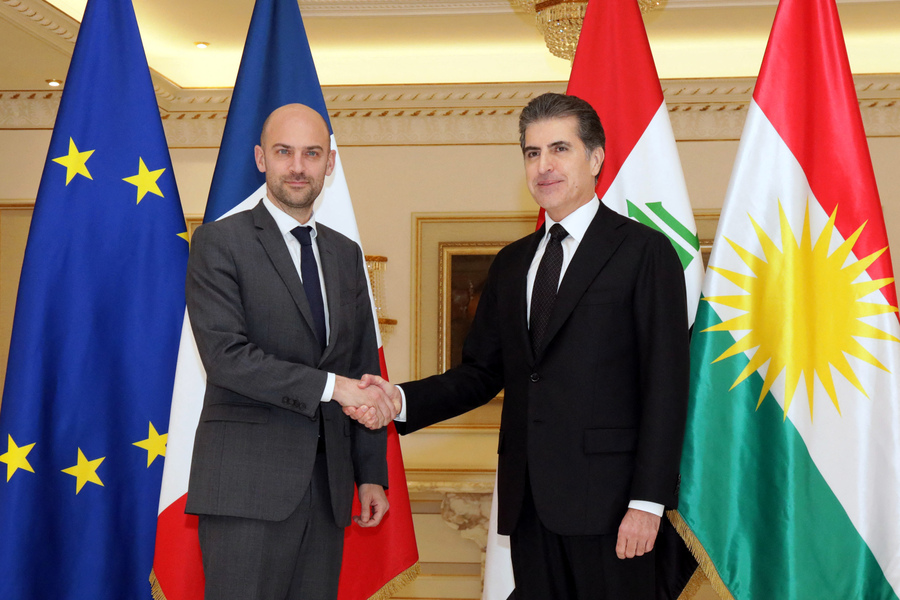 استقبل رئيس إقليم كوردستان نيجيرفان بارزاني مساء اليوم الخميس، وزير الخارجية الفرنسي جان نويل بارو والوفد المرافق له.