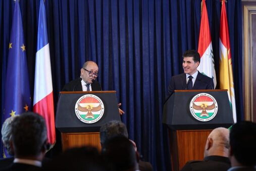عقب الاجتماع الذي عقد أمس الخميس 17/10/2019 بين الرئيس نيجيرفان بارزاني وجان ايف لودريان وزير الخارجية الفرنسي في اربيل، في مؤتمر صحفي قال الرئيس نيجيرفان بارزاني في كلمة له في مستهل المؤتمر الصحفي: "اسعدنا استقبال سيادة وزير الخارجية الفرنسي ونرحب به بحرارة، نحن ننظر الى زيارة سيادته في الظرف المعقد للمنطقة، كدعم واهتمام فرنسا لاقليم كوردستان والعراق وترسيخ الاستقرار في العراق والمنطقة عموما ".