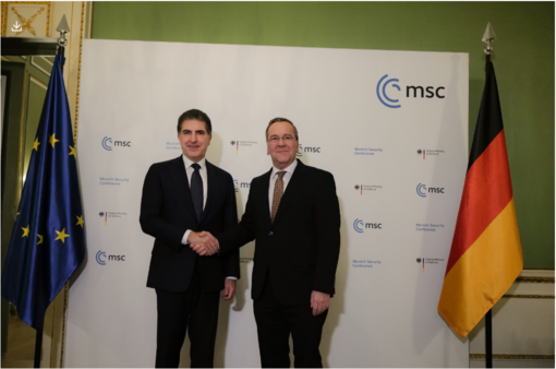 على هامش أعمال مؤتمر ميونخ للأمن، اجتمع نيجيرفان بارزاني، رئيس إقليم كوردستان، مساء اليوم الجمعة (13 شباط 2026)، مع بوريس بيستوريوس، وزير دفاع جمهورية ألمانيا الاتحادية، حيث جرى بحث العلاقات والتعاون المشترك للعراق وإقليم كوردستان مع ألمانيا في المجالين العسكري والأمني.