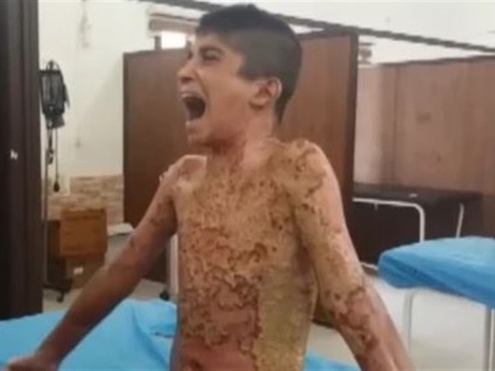 أوضح والد الصبي محمد حميد محمد، 13 عاماً، والذي تم تسليط الضوء على إصاباته المروعة الأسبوع الماضي، أن جهود إطفاء النيران المشتعلة في جسم ابنه استغرقت جهوداً مضنية ووقتاً طويلاً.