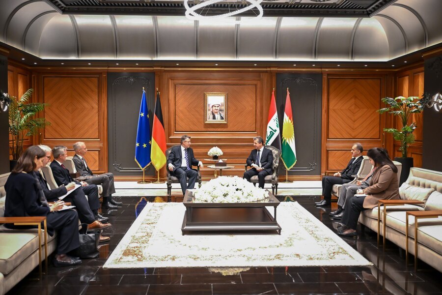 استقبل رئيس حكومة إقليم كوردستان، مسرور بارزاني، اليوم الأربعاء 25 شباط 2026، وفداً ألمانياً برئاسة وكيل وزارة الخارجية جيزا أندرياس فون غاير.