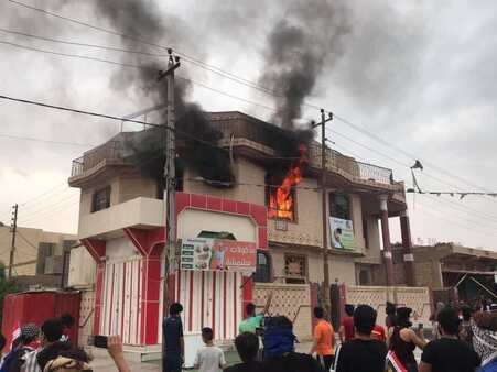 أشعل محتجون النيران في مقر حزب تيار الحكمة وجماعة عصائب أهل الحق وسط مدينة السماوة، اليوم الجمعة