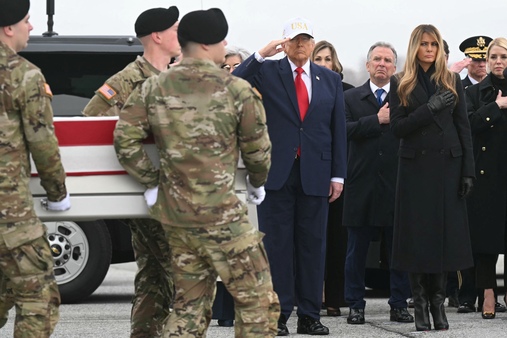 أشرف الرئيس الأميركي دونالد ترامب السبت على مراسم قصيرة على مدرج قاعدة دوفر الجوية (شمال شرق) لإعادة جثامين الجنود الأميركيين الستة الذين قتلوا في الحرب على إيران.