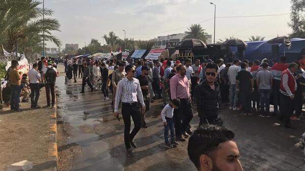 فيما توافد الآف من الطلبة والموظفين في محافظة النجف، صباح الاحد، الى ساحات التظاهر واعلنوا "عصيانا مدنيا عاما".