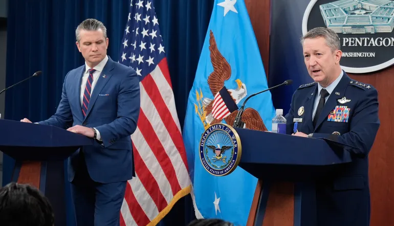 اعتبر وزير الدفاع بيت هيغسيث ورئيس الأركان دان كين الأميركيين اليوم الأربعاء (8 نيسان 2026)، أن بلادهما حققت نصراً كبيراً على إيران باستخدام 10% فقط من القوة الأميركية العسكرية، وقد تم تدمير الترسانة الإيرانية بشكل شبه كامل.
