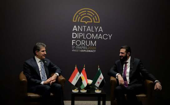 وقال نيجيرفان بارزاني في تدوينة على منصة إكس اليوم الجمعة: "سررتُ بلقاء الرئيس السوري أحمد الشرع اليوم في أنطالي".