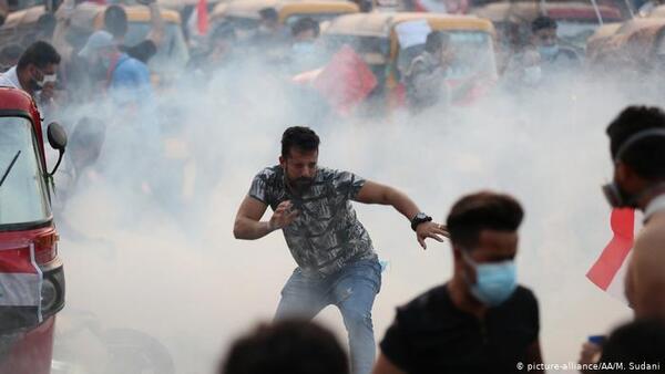 ونقلت رويترز إن قوات الأمن أطلقت الغاز المسيل للدموع وقنابل الصوت على حشود من المحتجين كانوا يضعون خوذات ودروعا في شارع رئيسي بوسط العاصمة بغداد مما أدى إلى تفرقهم وإصابة بعضهم.