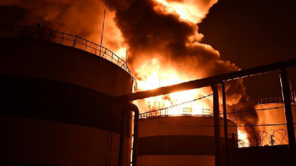 وبينت أنه جرى رصد غارات بطائرات مسيرة على المنشأة، مما تسبب في اندلاع حريق.