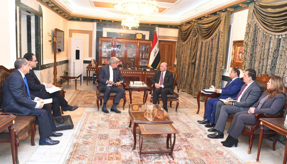 استقبل نائب رئيس الوزراء وزير المالية فؤاد حسين في مكتبه ببغداد اليوم الثلاثاء السفير الفرنسي في بغداد برونو اوبير، حيث تم تقديم رؤية و خطط الحكومة العراقية الاصلاحية خلال اللقاء.
