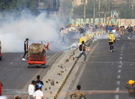 وأفاد مصدر امني، في وقت سابق اليوم، بأن المتظاهرين اسقطوا كتلا كونكريتية في الساحة الكائنة وسط بغداد، وسط ضرب متقطع للقنابل الدخانية