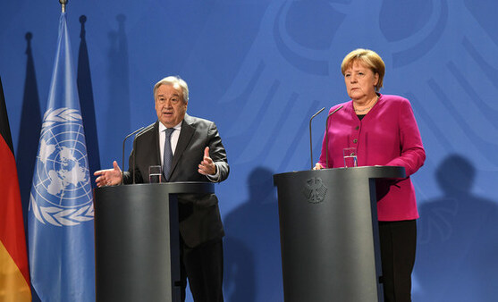 حثت المستشارة الألمانية أنجيلا ميركل والأمين العام للأمم المتحدة أنطونيو غوتيريش الثلاثاء على العمل لإعداد دستور جديد لسوريا. وتحدثت ميركل خلال مؤتمر صحفي مشترك مع غوتيريش في العاصمة الألمانية برلين، إن "سوريا بحاجة إلى دستور جديد"، موضحة أنه "السبيل الوحيد لخلق بيئة يستطيع فيها اللاجئين السوريين بالعودة إلى ديارهم".