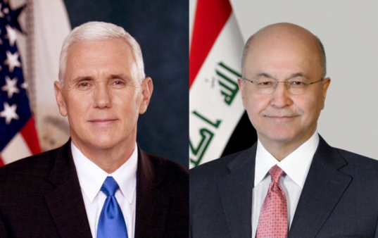 أكد نائب رئيس الولايات المتحدة الامريكية مايكل بينس، لرئيس جمهورية العراق الفدرالي برهم صالح، دعم بلاده لاستقرار العراق وتطلعات العراقيين في الإصلاح و السلام.