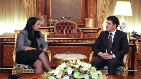 وذكر بيان صادر عن رئاسة اقليم كوردستان أنه "قدم فخامة الرئيس نيجيرفان بارزاني خلال لقاء تهانيه للسيدة تريدن بمناسبة مباشرتها مهام منصبها الجديد راجياً لها النجاح في مهامها، كما عبر الجانبان عن الرغبة في تنمية العلاقات بينهما في مختلف المجالات".