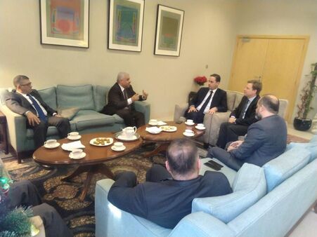 التقى رئيس المفوضية العليا لحقوق الانسان عقيل الموسوي والوفد المرافق له بالسفير البريطاني ستيفن هيكي في بغداد لبحث تطورات الأوضاع الإنسانية في العراق في ظل استمرار التظاهرات ومارافقها من أحداث اليوم السبت.