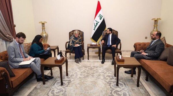 ناقش رئيس مجلس النواب العراقي محمد الحلبوسي مع ممثلة الأمين العام للأمم المتحدة في العراق جينين بلاسخارت، اليوم الاثنين، التطورات السياسية في البلاد، والأوضاع في المنطقة.