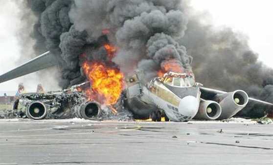 وتحطمت الطائرة التابعة للخطوط الجوية الأوكرانية بالقرب من مطار الخمين واشتعلت فيها النيران.