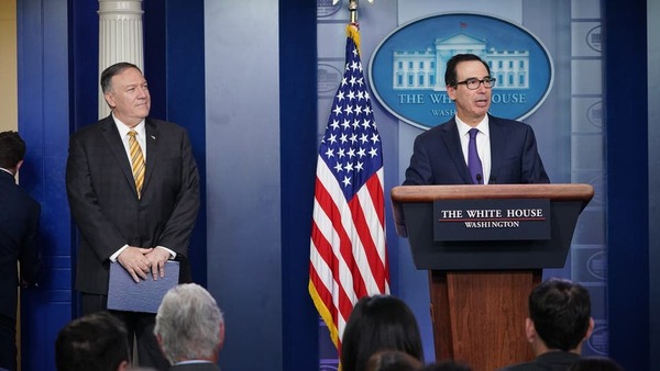 وقال وزير الخارجية الأميركي مايك بومبيو في مؤتمر صحافي مشترك مع وزير الخزانة ستيفن منوشين، إن "هدف واشنطن منع إيران من زعزعة الاستقرار في الشرق الأوسط، العقوبات الجديدة ستشمل 8 مسؤولين من قوات الباسيج والمجلس الأعلى للأمن القومي الإيراني الذين انخرطوا في قتل المحتجين، العقوبات الأميركية ستستهدف قلب أجهزة الأمن الإيرانية".