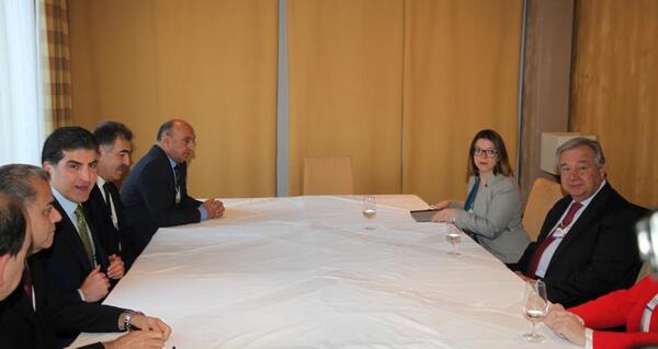 أشاد رئيس إقليم كوردستان نيجيرفان بارزاني بمهام ودور الأمم المتحدة في العراق ودعا إلى استمرارها في دعم العملية السياسية وتهدئة الأوضاع ومساعدة العراق،وذلك خلال اجتماعه مع أنطونيو غوتيريس أمين عام الأمم المتحدة، اليوم الجمعة.