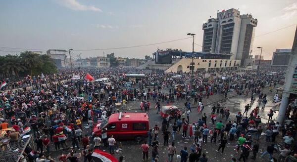 وقال المصدر مساء الاحد إن المتظاهرين استعادوا السيطرة على جسر الجمهورية بعد انسحاب اصحاب القبعات الزرق الى المطعم التركي المطل على ساحة التحرير وسط بغداد.