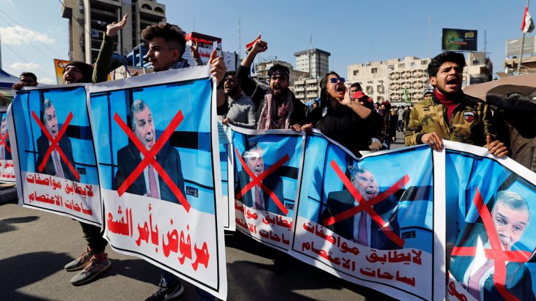 وخرج آلاف العراقيين في مسيرات حاشدة بالعاصمة بغداد ومدن أخرى، أمس، رافضين تكليف محمد توفيق علاوي لمنصب رئاسة الوزراء نظراً لعدم مطابقته المواصفات التي حددها مسبقاً قادة الحراك الشعبي.