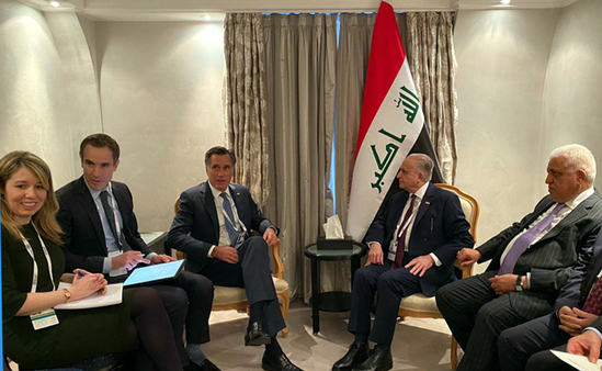 أكد وزير الخارجية العراقي، محمد علي الحكيم، موقف بلاده الذي يثمّن دور القوات الامريكية والتحالف الدولي في دحر داعش الارهابي، وكذلك التحالف الدولي، مرحّباً ببيانها عن تكثيف الجهود لإنهاء فلول التنظيم الإرهابي، وكذلك ضرورة إبعاد العراق عن التجاذبات الإقليميّة، وسياسة المحاور.