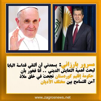 أما في الفاتيكان، فسيجتمع رئيس حكومة إقليم كوردستان مع البابا فرنسيس لمناقشة التزام إقليم كوردستان بمكافحة الاضطهاد الديني وتشجيع الحوار بين الأديان.
