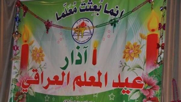 أعلنت نقابة المعلمين في العراق، الغاء الاحتفال بعيد المعلم في العاصمة بغداد وبقية المحافظات، وذلك نتيجة الظروف التي يشهدها البلاد، دعماً للحراك الشعبي في العراق وتضامناً مع المطالب الجماهيرية للمتظاهرين.