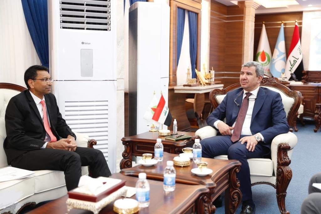 وزير النفط يبحث مع السفير الهندي الاستثمار المشترك في قطاع الصناعة التكريرية والمصافي