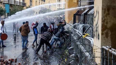 اشتباكات بين المتظاهرين وقوات الأمن اللبنانية قرب مبنى البرلمان