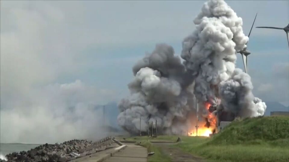انفجار أول صاروخ ياباني خاص بعد إطلاقه مباشرة
