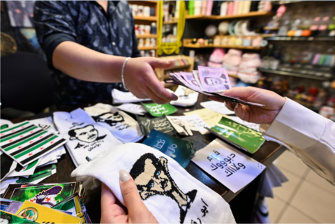 صور كاريكاتورية ساخرة عن الأسد على جوارب للبيع في دمشق