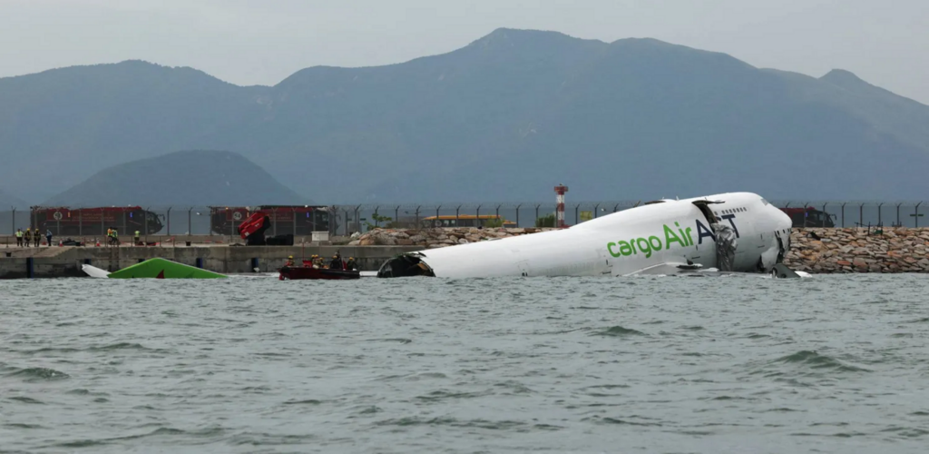 مصرع شخصين في انزلاق طائرة شحن إماراتية خارج مدرج مطار هونغ كونغ