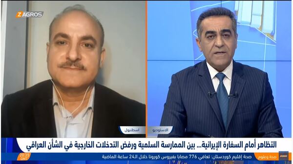 الكندوري خلال حديثه عبر شاشة فضائية زاكروس عربية، أكد أن "التظاهر أمام السفارة الإيرانية هي رسالة للعالم، مفادها أن العراق الآن ليس إلا عبارة عن حامية إيرانية، يتم التصرف فيها من خلال هذه السفارة، كمندوب ثان للتحكم بمصير هذا البلد"، مبيناً أن الشعب العراقي لن يرضى العيش تحت الإنتداب الإيراني، ومن الواضح أن الخروج الجماهيري هو لإيصال هذه الرسالة".