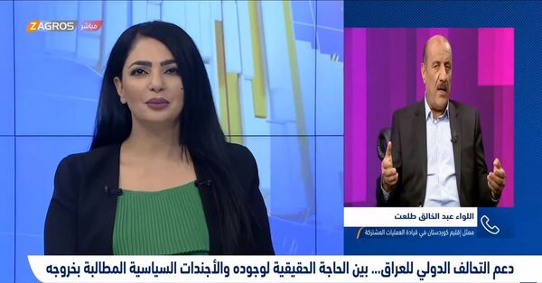 هذا وشدد طلعت على أن الجيش العراقي وقوات البيشمركة بحاجة إلى قوات التحالف الدولي من حيث الدعم اللوجستي والإسناد الجوي، معتبراً أنه "لولا قوات التحالف لما وصلنا إلى تحقيق هذه النتائج في هذه المرحلة".