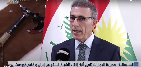 تحدث مدير جوازات السليمانية، العميد سالار عبد الله، اليوم الخميس (10 حزيران2021)، لشاشة زاكروس عن الأنباء التي تتحدث عن إلغاء تأشيرة السفر بين إيران وإقليم كوردستان.