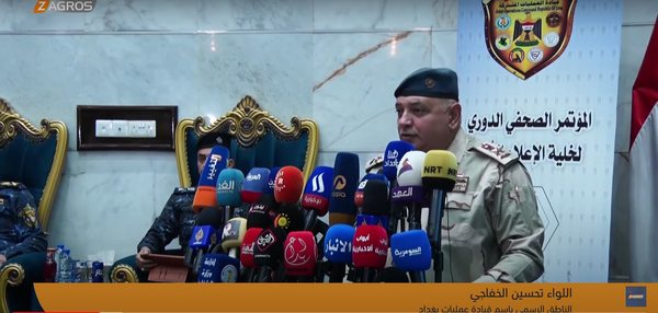 الخفاجي قال خلال مؤتمر صحفي حضرته كاميرا زاكروس "في الفترة الماضية أكدت قيادة العمليات المشتركة على ثلاثة نقاط رئيسية، هي الحدود، وتوجيه القائد العام للقوات المسلحة، بضرورة مسكها وغلق الثغرات الموجودة، والثانية: التعاون الكبير بين قيادة العمليات وقوات البيشمركة، وخصوصا أن هذا التعامل توج بالقيام بعمليات مشتركة بيننا، وأيضا الجهد الاستخباري والأمني الذي فعل وأتى بنتائج أظهرت خلال العمليات النوعية التي قامت بها قواتنا الأمنية".