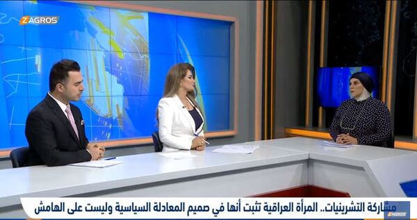 أكدت مسؤولة اللجنة الإعلامية للهيئة العراقية للعصيان المدني، ليلى الشمري، على الدور الكبير للمرأة العراقية في التظاهرات السلمية بهدف تغيير الواقع الاجتماعي والسياسي، مشددة على أن دورها ما زال مستمراً من خلال المشاركة الفعالة في النقابات ومنظمات المجتمع المدني، كما انتقدت نظام الكوتا النسائية في مجلس النظام العراقي، معتبرة أن النساء في المجلس الحالي لا يمثلن المرأة العراقية.