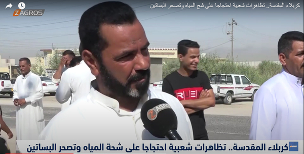 تظاهر العشرات من أهالي منطقة الجمالية في محافظة كربلاء، اليوم الأحد (27 حزيران 2021)، احتجاجا على شح المياه وتصحر بساتينهم وقلة الخدمات في المنطقة، حيث قام الأهالي بإغلاق محطة المياه مهددين بالتصعيد في حال عدم الاستجابة لمطالبهم.