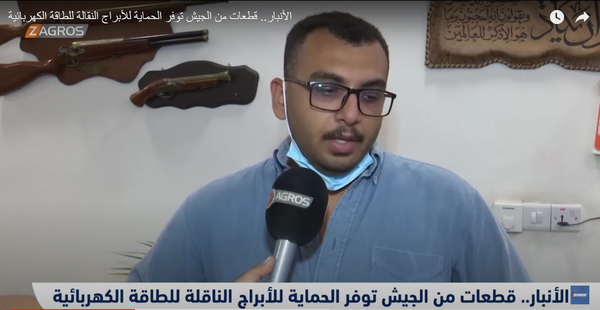 بدوره بيّن الناشط المدني، رافد علي أنه "لا توجد كهرباء بجميع محافظات العراق، حماية الأبراج جاءت متأخرة، يفترض كحكومة أن تكون لديها وسائل مراقبة كالطائرات المسيرة لأنها لن تتمكن من تغطية كافة الأبراج بواسطة الاشخاص".