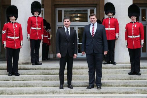 اجتمع رئيس إقليم كوردستان نيجيرفان بارزاني، مساء اليوم الأربعاء (15 أيلول 2021)، مع وزير الدفاع البريطاني بين والاس، في لندن، ليبحثا معاً عمل قوات التحالف الدولي ضد داعش وقضايا ذات الاهتمام المشترك.