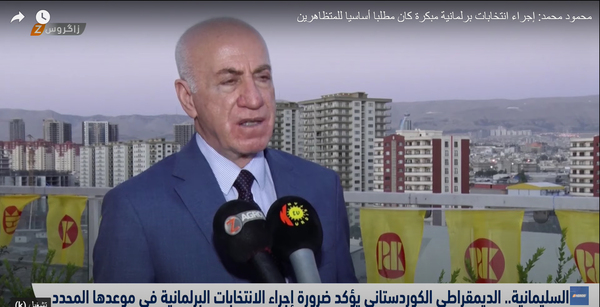 المتحدث الرسمي أكد أنهم في الحزب الديمقراطي الكوردستاني و"منذ عام 2003 نسعى لبناء عراق جديد يجسد الإحساس بالوجود ومن ثم تحمل المسؤولية ، لذلك فأن إجراء الانتخابات النيابية المبكرة ضرورة ملحة في إطار إرادة محلية ودولية خيار لا بد منه، كما نجد أن أي تأخير في إجراءها في موعدها المحدد سيضر بالعملية السياسية في العراق".