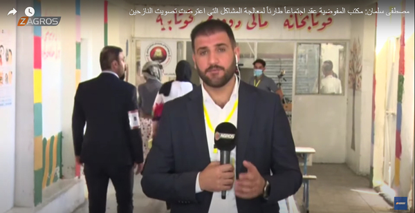 مراسل زاكروس مصطفى سلمان أوضح خلال تواجده في المركز المخصص للنازحين وهو واحد من بين 20 مركز انتخابي، وأشار إلى أنه تحديدا في ساعات الصباح الأولى "شهد اقبالاً ضعيفاً للناخبين".