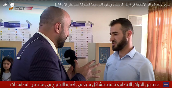أكد مراسل فضائية زاكروس في أربيل إلى أن الإقبال في عدد من المراكز الانتخابية في عاصمة الإقليم ما يزال ضعيفاً، مشيراً في الوقت ذاته إلى عدم تسجيل أي خروقات أو مشاكل تذكر حتى الآن مع ضبط قوات الآسايش الأمن في هذه المراكز.